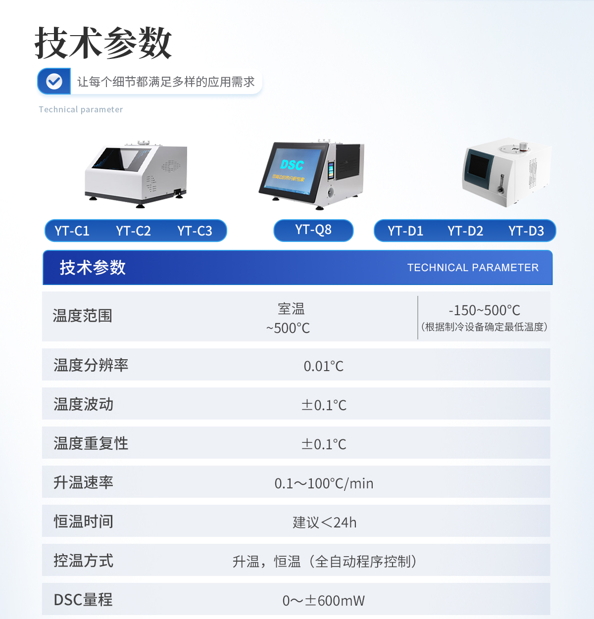 1.溫度范圍: -150~500℃ (根據(jù)制冷設備確定**溫度) 2.溫度分辨率: 0.01℃ 3.溫度波動: ±0.1℃ 4.溫度重復性: ±0.1℃ 5.升溫速率: 0.1~100℃/min 6.恒溫時間:建議<24h 7.控溫方式:升溫,恒溫(全自動程序控制) 8.DSC量程: 0~±600mW 9.DSC解析度: 0.01mW 10.DSC靈敏度: 0.01mW 11.工作電源: AC220V/50Hz或定制 12.可選冷卻設備: - 壓縮空氣冷卻(-AR):RT ... 500℃ - 機械制冷(-MR): -40 ... 500℃ - 液氮制冷(-LN):-150 ... 500℃ (可以單獨或同時連接多種冷卻裝置) 13. 氣氛控制氣體:氮氣、氧氣(儀器自動切換) 14.氣體流量:0-300mL/min 15.氣體壓力:0.2MPa 16.顯示方式: 24bit色,8寸 LCD觸摸屏顯示 17.數(shù)據(jù)接口:標準USB接口 18.參數(shù)標準: 配有標準物質(銦,錫,鋅),用戶可自行校正溫度