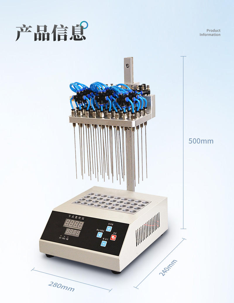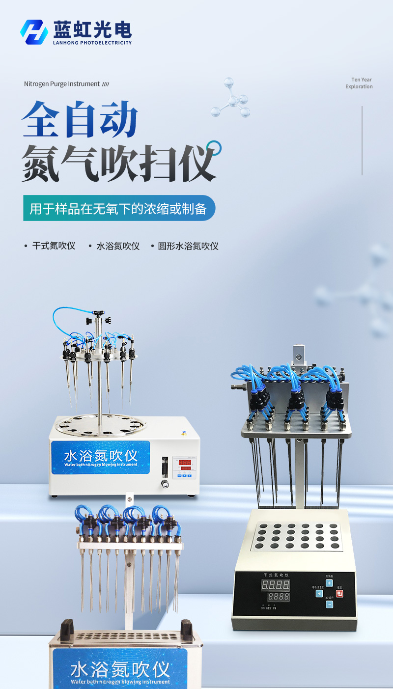 干式氮吹儀是氮氣濃縮裝置、氮氣吹掃儀的簡稱,主要用于大批量樣品在無氧下的濃縮或制備。廣泛應用于農殘分析、商檢、食品、環境、制藥、生物制品等行業, 氮吹儀是通過微電腦控制技術,加熱是通過高純鋁材料做為加熱介質,加熱速度快,達到控溫更加準確,控溫范圍廣,可以同時處理36組樣品.