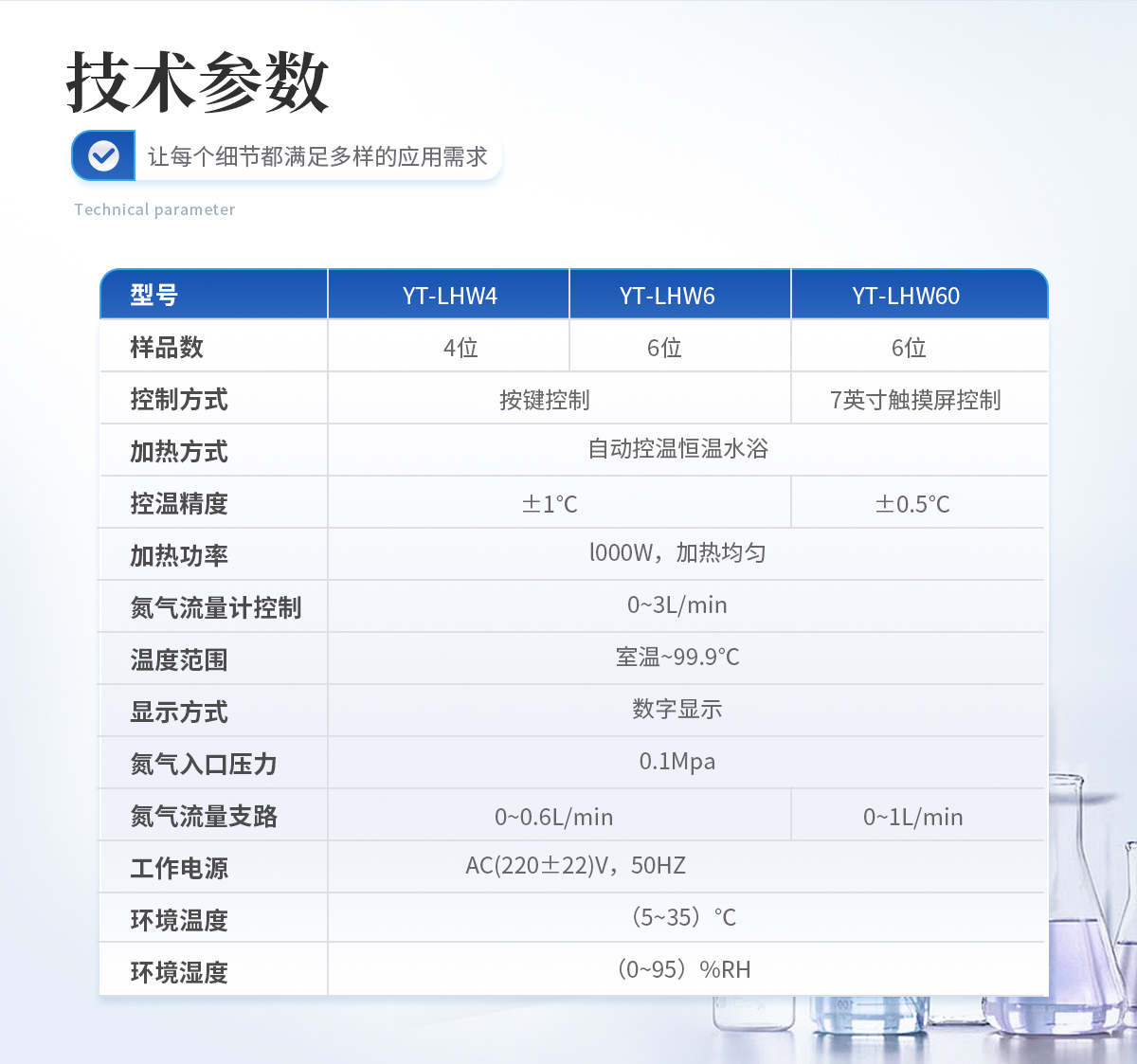 1.大容量反應瓶,可同時處理多個樣品。 2.恒溫水浴加熱,具有快速自動恒溫控制系統,加熱溫度可以手動設定。 3.每個樣品的氮氣流量獨立控制調節或關閉,針閥氣體流量計準確控制和顯示氣體總消耗量。 4.由升降位置固定旋鈕調節樣品架及配氣系統,旋轉樣品架的升降,正面安裝樣品,操作方便。 5.鹽酸口、氣體進氣口、出口三口一體且相互區分開,不干擾操作。