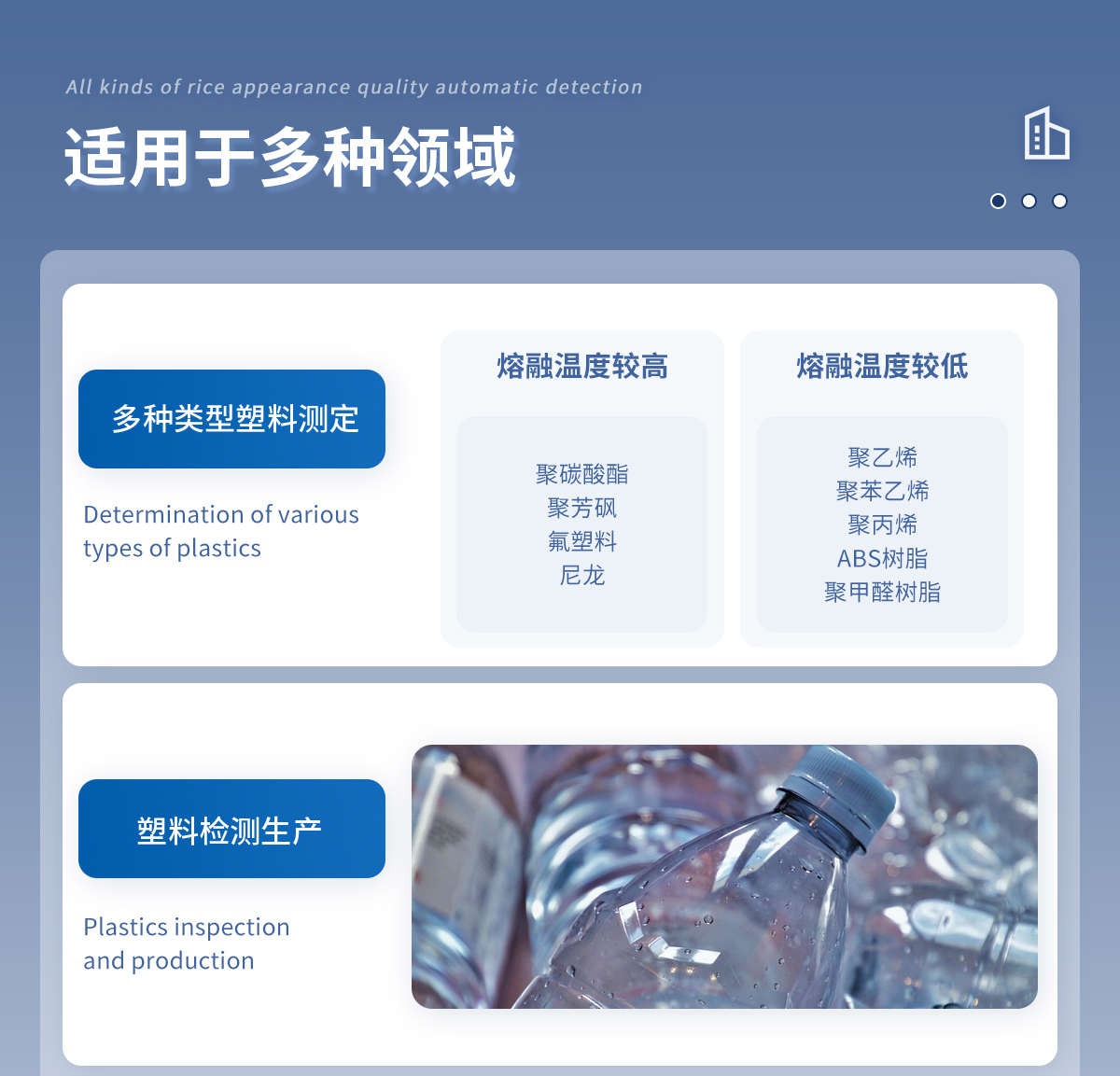 本儀器是用來測定各種高聚物在粘流狀態時熔體流動速率,它既適用于熔融溫度較高的聚碳酸酯、聚芳砜、氟塑料、尼龍等工程塑料,也適用聚乙烯、聚苯乙烯、聚丙烯、ABS樹脂、聚甲醛樹脂等熔融溫度較低的塑料測試,廣泛地應用于塑料生產、塑料制品、石油化工等行業以及有關院校、科研單位和商檢部門。