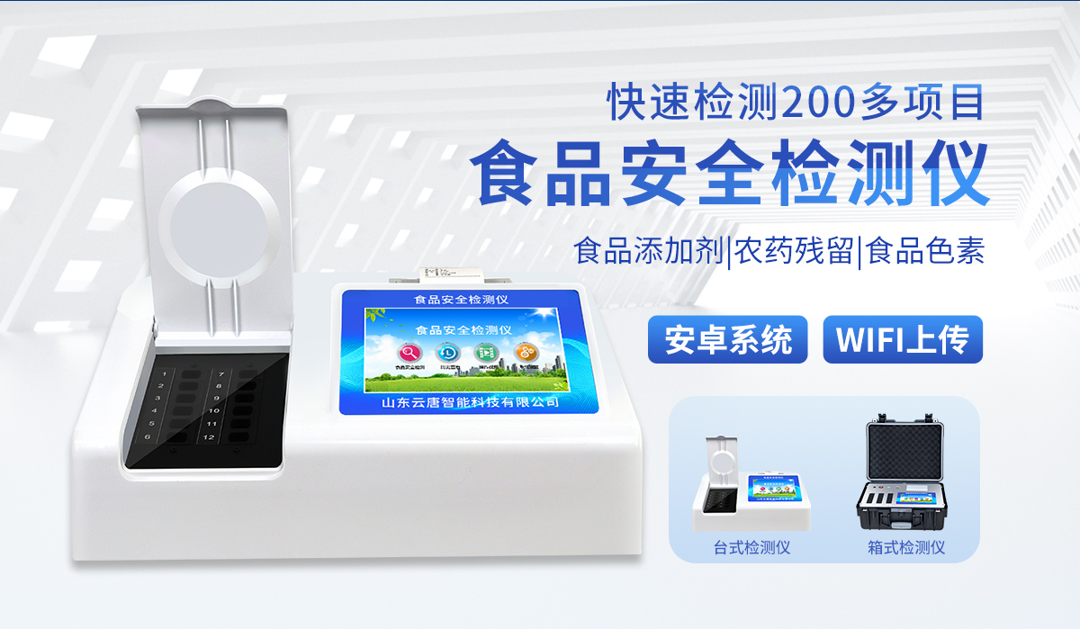 可快速檢測各類食品中的亞硝酸鹽、二氧化硫、甲醛、吊白塊、雙氧水、硼砂、農藥殘留、乳及乳制品中蛋白質、硝酸鹽、重金屬鉛的含量,儀器預留其他項目檢測程序和端口,根據日后需求可方便的自主增加檢測項目。