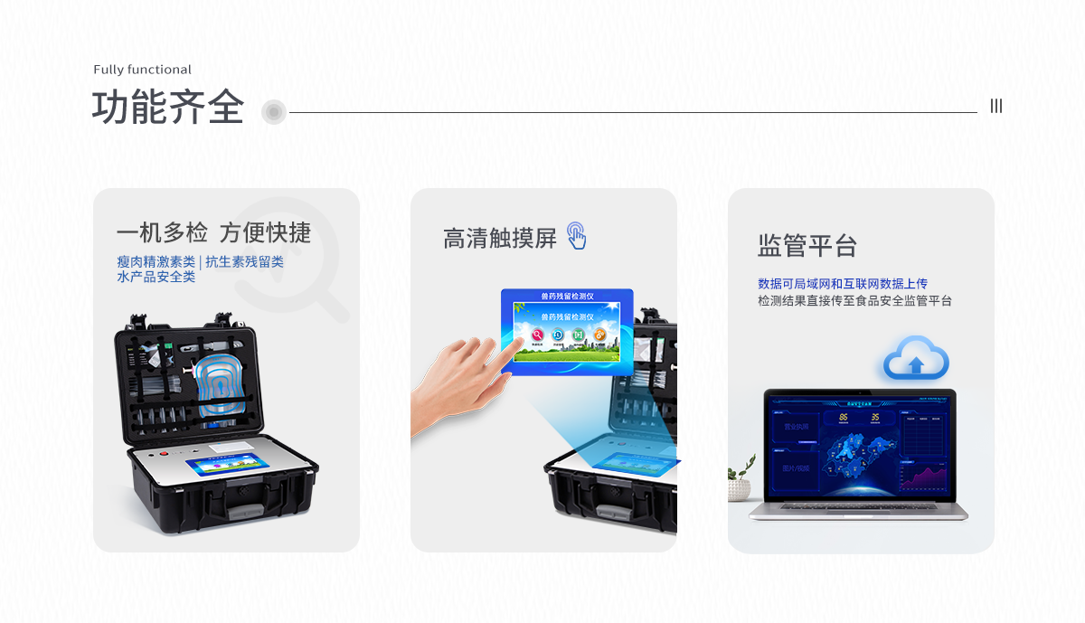 該多功能獸藥殘留檢測儀為集成化肉品安全快速檢測分析設備,可廣泛應用于畜牧養(yǎng)殖場、屠宰場、食品肉產(chǎn)品深加工企業(yè)、食藥監(jiān)局、檢驗檢疫部門、衛(wèi)生部門、高教院校、科研院所、農(nóng)業(yè)部門等單位使用。