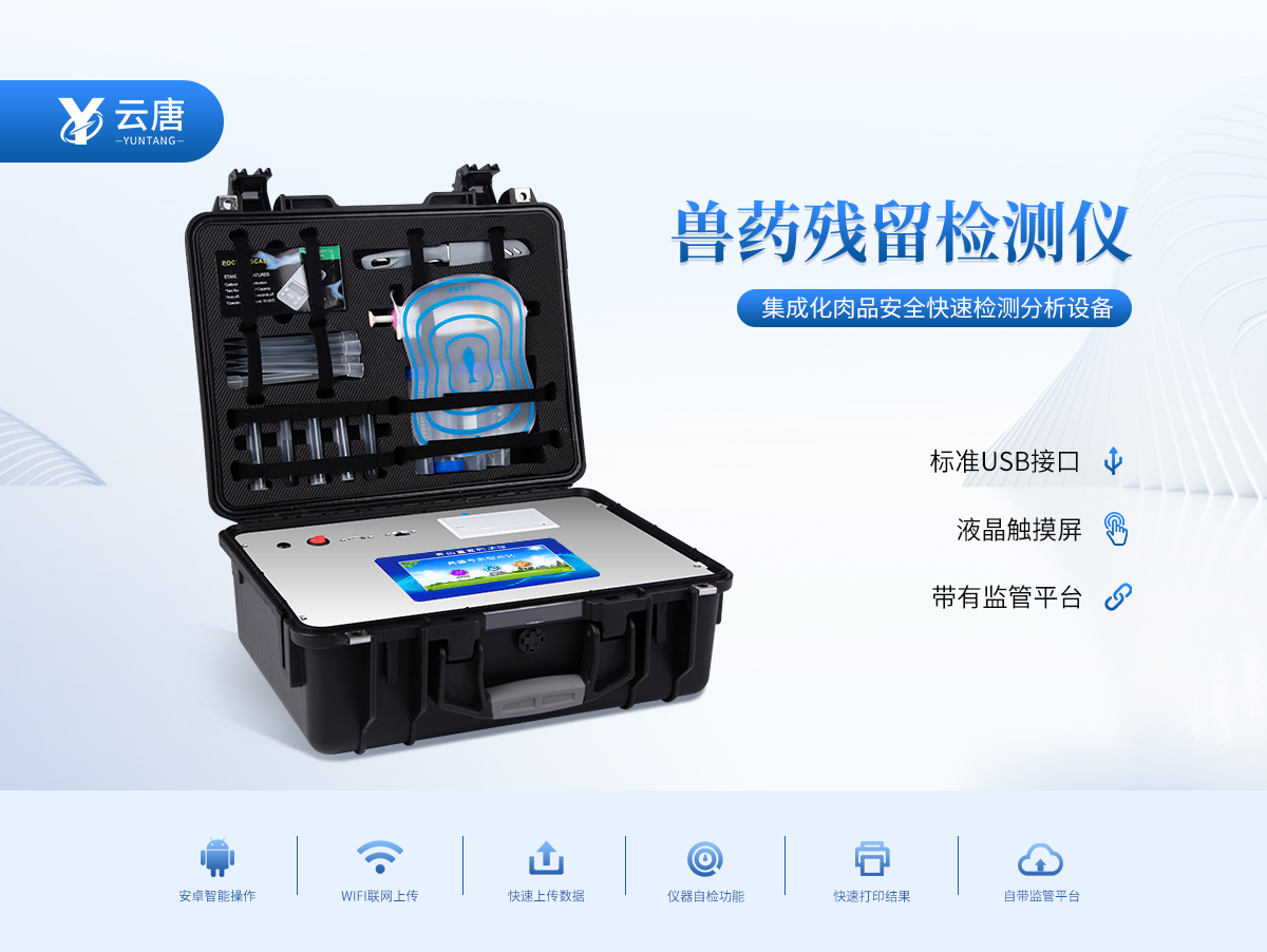 抗生素殘留檢測儀可現場快速檢測多類別抗生素類殘留,如可快速檢測四環(huán)素類、硝基呋喃類、磺胺類、沙星類、喹諾酮類、氯霉素、慶大霉素、鏈霉素、喹乙醇代謝物、硫酸鏈霉素、羧芐青霉素、噻孢菌素鈉、阿莫西林、氨芐西林、紅霉素、潮霉素B、安普霉紊、桿菌肽、氨丙琳、芐青霉家、頭孢噻呋、克拉維酸、氯羥吡啶、阿散酸等抗生素快速檢測;水產獸藥:呋喃妥因代謝、呋喃西林代謝、呋喃它酮代謝、呋喃唑酮代謝、孔雀石綠等。