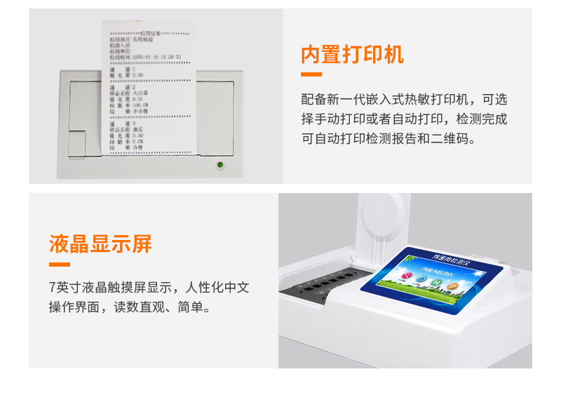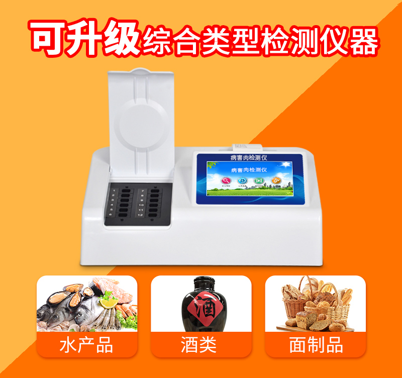 該多功能食品安全檢測儀為集成一體化食品安全快速檢測分析設備,廣泛應用于市場監管局、食品肉產品深加工企業、衛生部門、學校食堂、農業部門、養殖場、屠宰場、檢驗檢疫部門等單位使用。