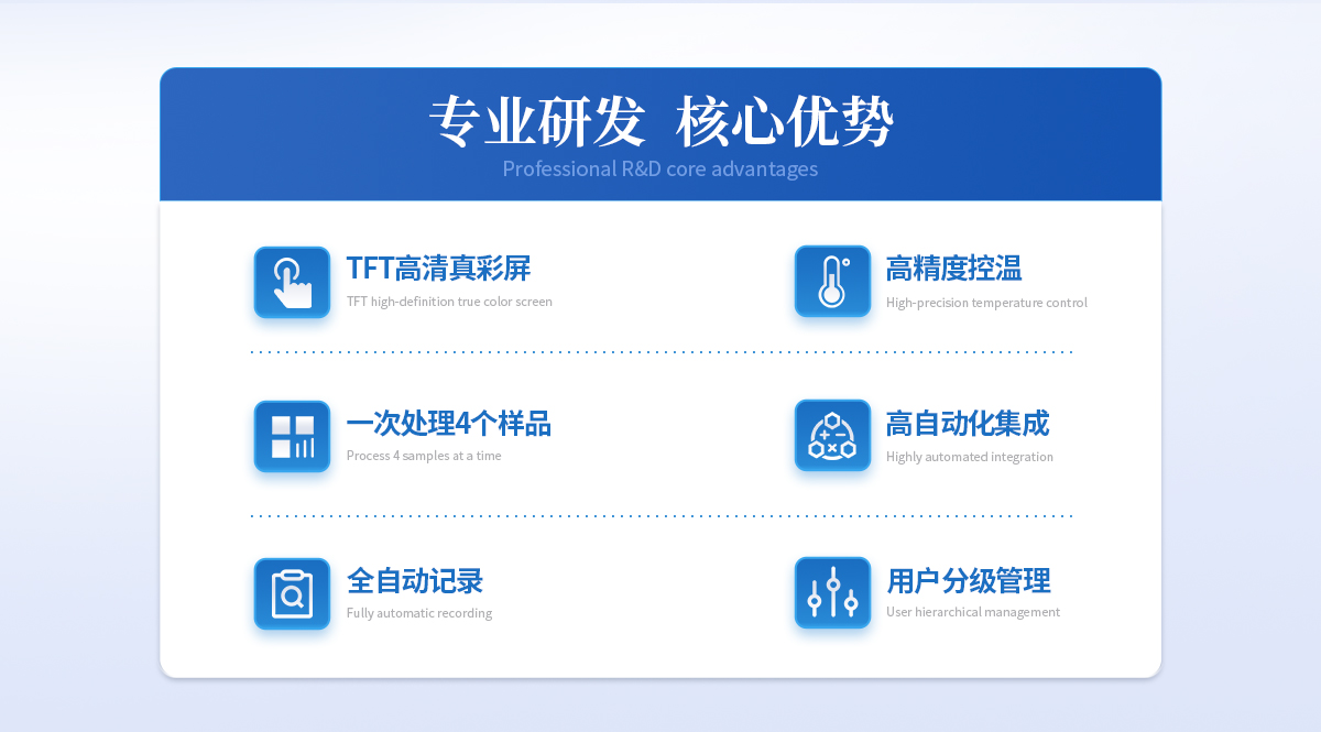 | 1、自動化集成,實現一鍵測定功能; | 2、一次處理4個樣品; | 3、高清視頻代替傳統顯微鏡 目視高; | 4、半自動記錄熔程,初熔,終熔; | 5、可通過打印機直接打印數據; | 6、符合21CFR Part 11、審計追蹤、藥典及電子簽名 | 7、符合GLP要求規范; | 8、符合藥典2015。 |