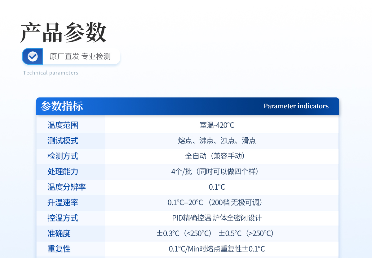 | 熔點儀在化學工業、醫藥研究中據有重要地位,是生產食品、藥物、香料、染料及其他有機晶體物質的必備儀器。 |