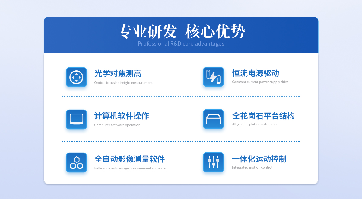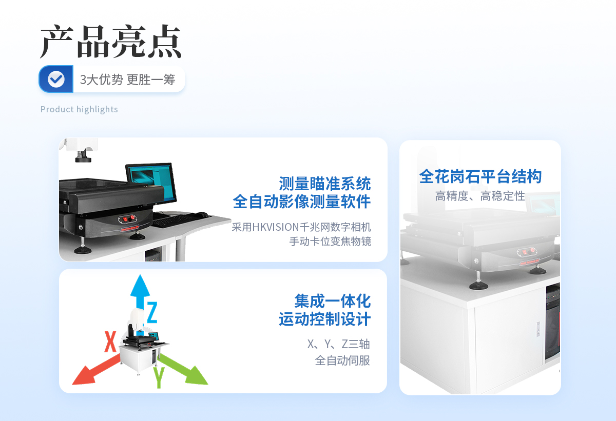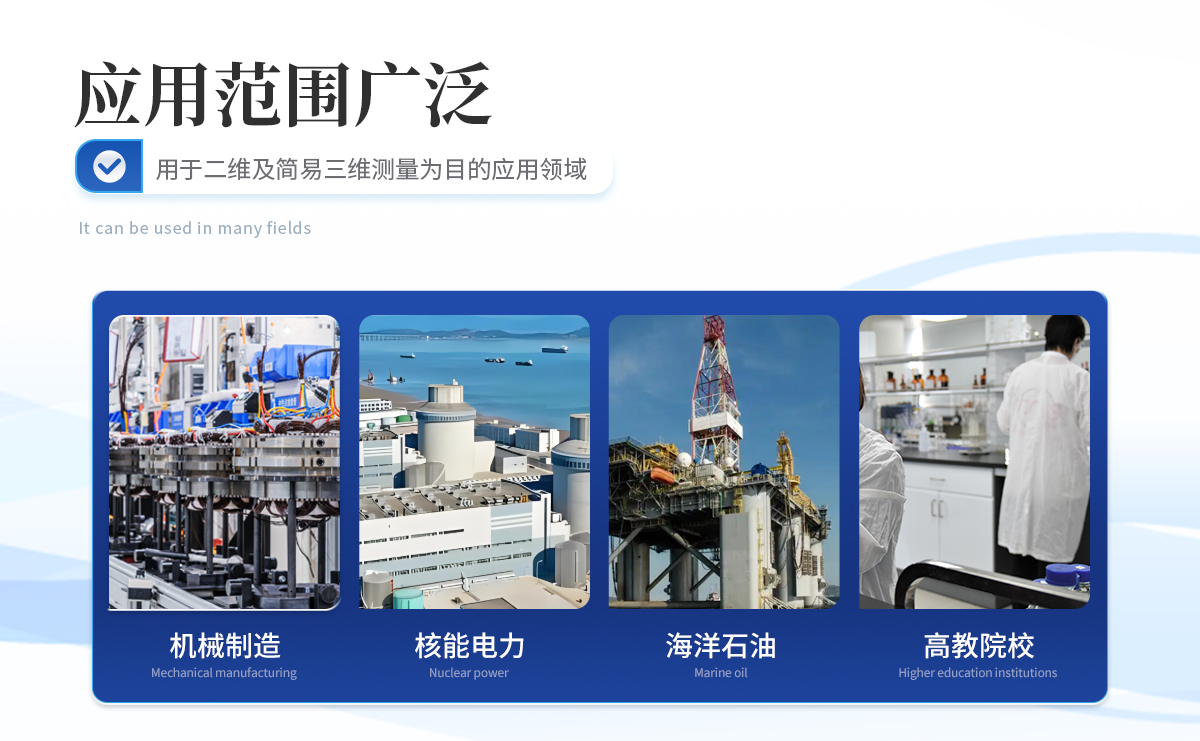 | 1.本機專為**全自動量測市場量身定制,其具有的CNC編程、精準定位、重復測量、SPC報表統計、自動測量結果輸出等功能,能快速**地解決不同產品的批量測量需要,適用于以二維及簡易三維測量為目的的一切應用領域, 廣泛應用在鍋爐、壓力容器、航天、航空、電力、石油、化工、海洋石油、管道、軍工、船舶制造、汽車、機械制造、冶金、金屬加工業、 鋼結構、鐵路交通、核能電力、高校等行業; | 2.本機X、Y、Z三軸均為伺服驅動,由鼠標、鍵盤或選配搖桿縱,通過本司專用的全自動影像測量軟件,具有自動邊緣提取、自動理匹、自動對焦、測量合成、影像合成等人工智能技術,同時,基于機器視覺與微米**控制下的自動對焦功能,可以滿足清晰攝影下輔助測高需要(亦可加入精密測頭完成接觸式坐標測高)。 可在使用夾具或工件隨意放置的情況下,進行批量測量、SPC結果分類、自動輸出測量結果等作。 |