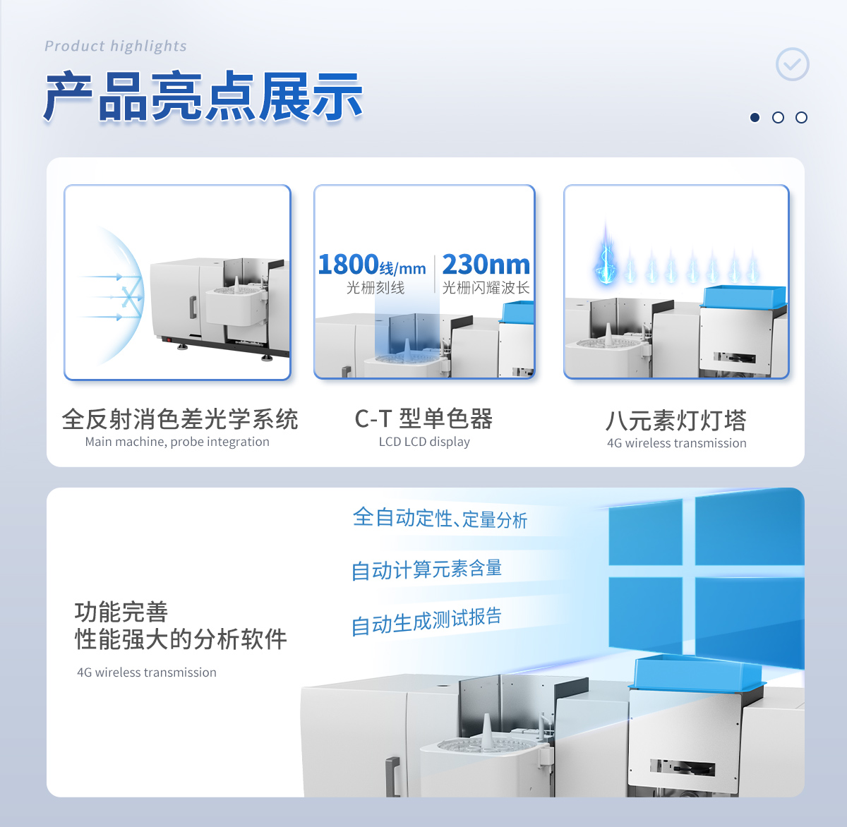 采用 1800 L/mm、閃耀波長 230nm 光柵作為分光系統。    3、八元素燈燈塔