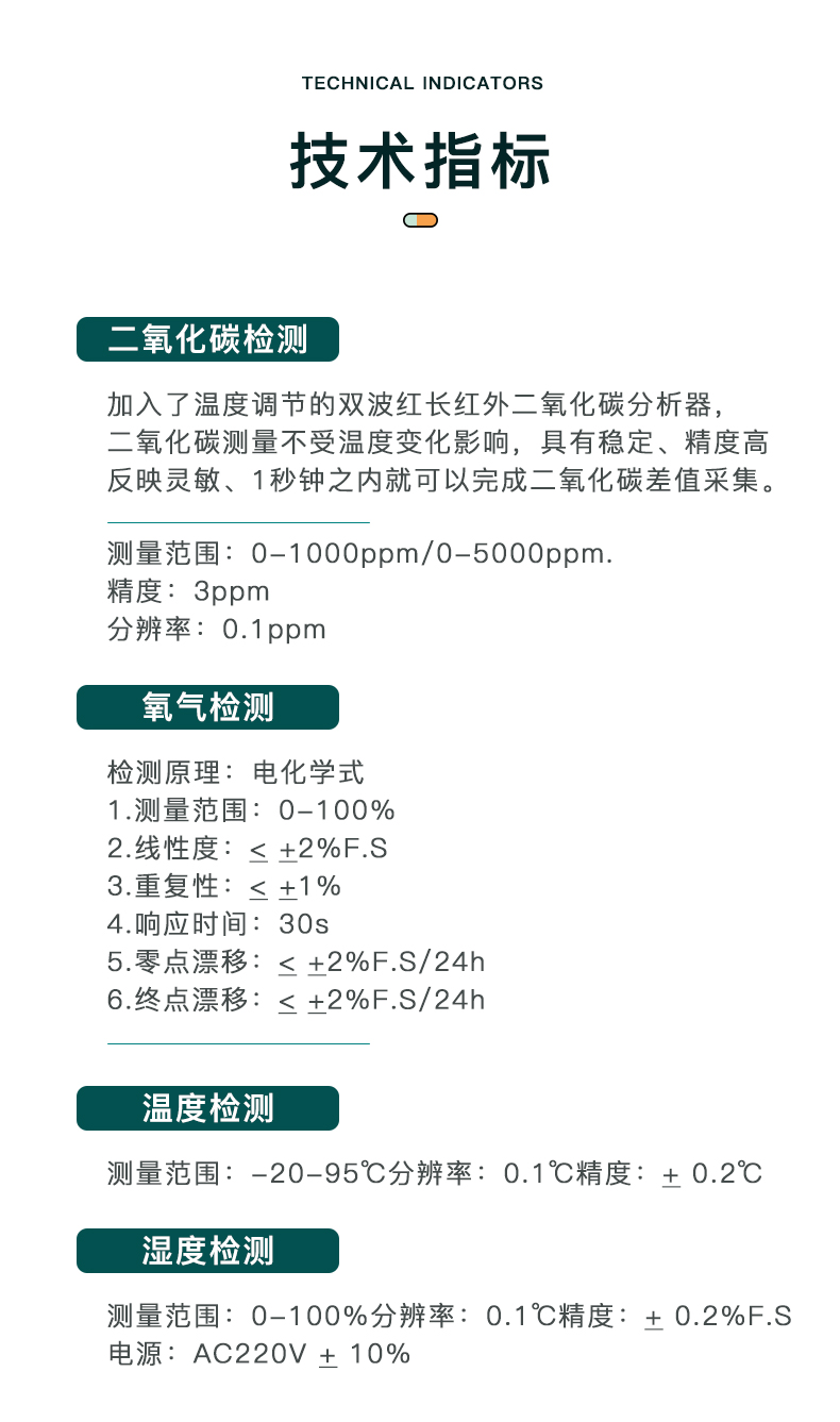 加入了溫度調節的雙波長紅外二氧化碳分析器,二氧化碳測量不受溫度變化影響,具有穩定、精度高,反映靈敏,1秒鐘之內就可以完成二氧化碳差值采集。