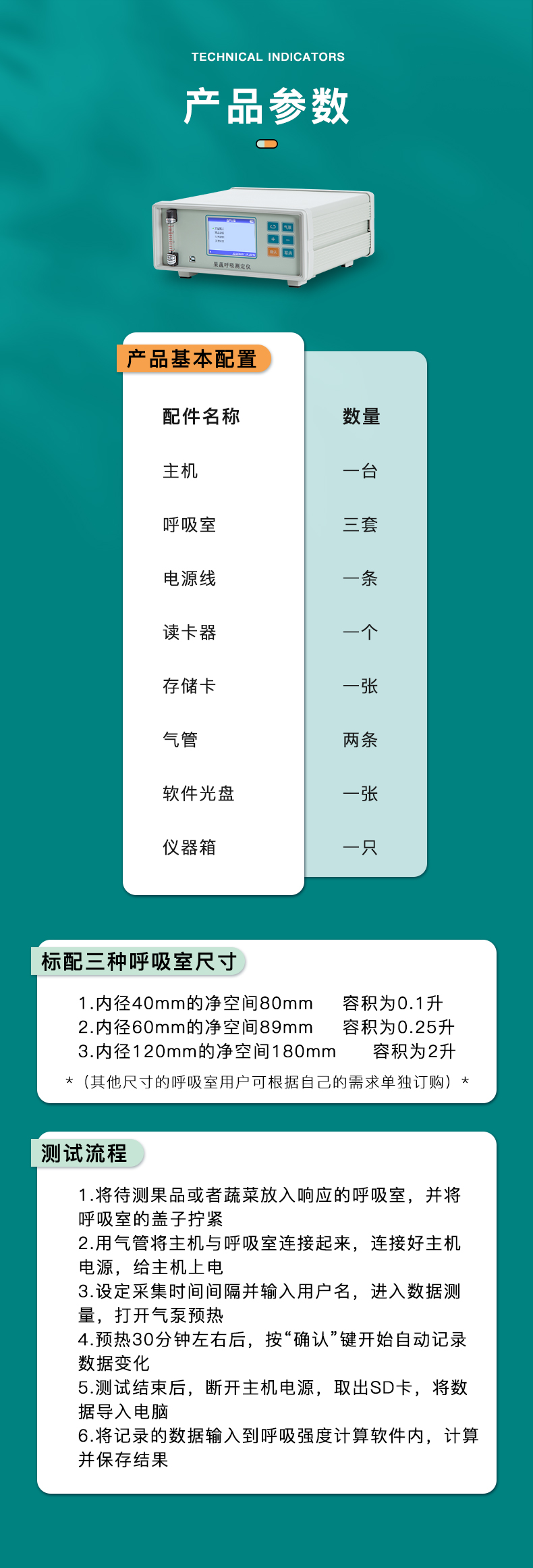 收獲后的果蔬產品仍然是一個獨立的有生命活動的生物體, 為了維持生命, 必然要進行呼吸作用。呼吸作用是果蔬等園藝產品采摘后*主要的生理代謝方式,呼吸強度是衡量呼吸作用強弱的一個指標, 是研究果蔬采摘后生理變化和貯運保鮮中必須掌握的重要指標。